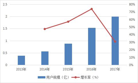 基于智能移動終端的普及和流量資費的下降,以及其它內(nèi)外部環(huán)境的驅(qū)動,2017年短視頻行業(yè)得到高速發(fā)展,短視頻用戶不斷增加,行業(yè)市場規(guī)模實現(xiàn)大擴張,到2017年第4季度用戶規(guī)模達到2.00億。