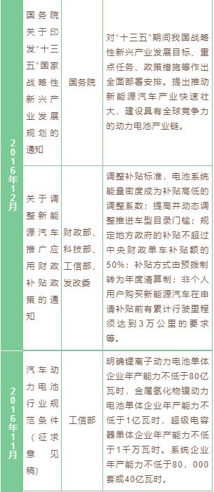 鋰離子動力電池是新能源汽車的核心部件,國家為加快新能源汽車產業(yè)化進程,頒布了一系列相關政策性文件,大力支持我國新能源汽車及動力電池行業(yè)的健康快速發(fā)展。同時,國家制定政策支持儲能技術發(fā)展以及產業(yè)化。