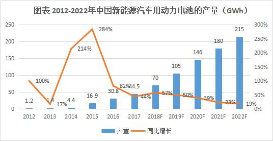2017年全球應用于電動汽車動力電源規(guī)模為69.0GWh,是消費電子、動力、儲能三大板塊中增量最大的板塊。GGII預計到2022年全球電動汽車鋰電池需求量將超過325GWh,相比2017年增長3.7倍。