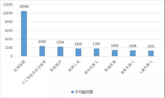 人工智能自適應(yīng)教育項目的融資事件數(shù)量很少排在倒數(shù)第二的位置,但平均融資額卻達(dá)到了第二??梢婋m然行業(yè)處于早期階段,但相對于其他細(xì)分領(lǐng)域來說更受資本的青睞。