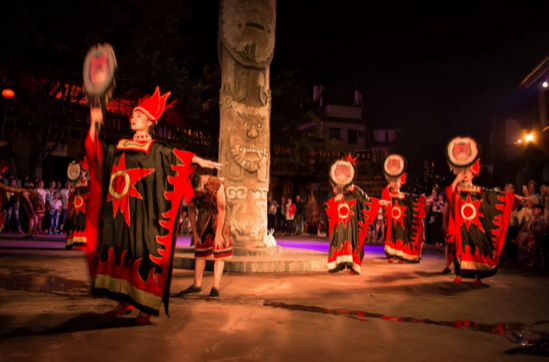 “彝鄉(xiāng)戀歌”是偉光匯通打造的一項以“天天長街宴、夜夜火把節(jié)”為主題的彝族原生態(tài)歌舞伴餐類旅游產(chǎn)品。通過連通的環(huán)形水上吊腳樓這一特殊用餐環(huán)境,“彝家八大碗”這一特色餐品,營造和再現(xiàn)了彝族人民擺設(shè)長街宴同族共聚、誠摯待客的餐飲文化。而在品嘗彝家美食之余,中央水榭舞臺的表演更是精彩紛呈——跳菜、敬酒歌、服飾展、猜新娘互動等等,讓游客在享受美食的同時,感受原汁原味的彝族風(fēng)情。