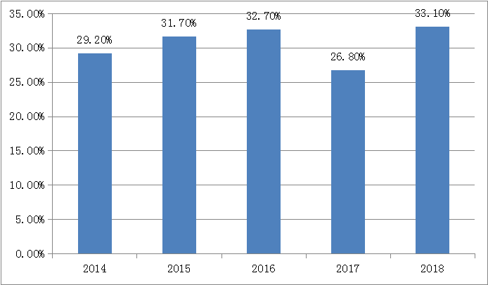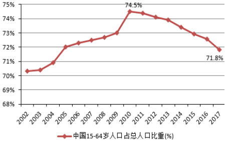 近年來(lái),中國(guó)人口結(jié)構(gòu)發(fā)生了巨大變化,15-64歲勞動(dòng)適齡人口占總?cè)丝诘谋戎刈?011年以來(lái)呈現(xiàn)逐步下滑的趨勢(shì),2017年該比重已經(jīng)下滑至71.8%,相比2010年的最高點(diǎn)降低了2.7個(gè)百分點(diǎn)。另外,中國(guó)社會(huì)的老齡化問(wèn)題更加嚴(yán)重,中國(guó)人口紅利逐步消失,目前已經(jīng)出現(xiàn)了劉易斯拐點(diǎn)。人口結(jié)構(gòu)的變化,勞動(dòng)力供給條件的變化顯著的推高了我國(guó)的勞動(dòng)成本,不僅削弱了制造業(yè)的競(jìng)爭(zhēng)力,對(duì)勞動(dòng)密集型的產(chǎn)業(yè)同樣也帶來(lái)了嚴(yán)峻的挑戰(zhàn),也削弱了中國(guó)產(chǎn)品在全球市場(chǎng)的競(jìng)爭(zhēng)力。
