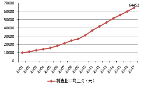 中國(guó)制造業(yè)平均工資(元)