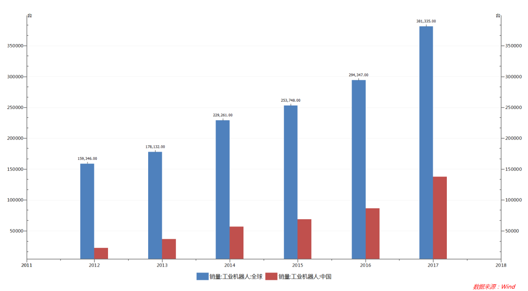 中國(guó)及全球工業(yè)機(jī)器人銷量