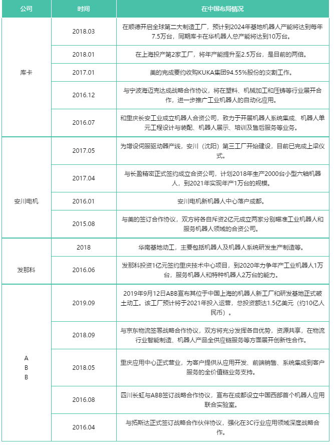 工業(yè)機(jī)器人“四大家族”在中國(guó)的布局情況