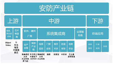 我國真正意義上的安防產(chǎn)業(yè)興起于20世紀(jì)80年代,歷經(jīng)30逾年的積淀,已形成較為完整的產(chǎn)業(yè)鏈。即“上游零部件供應(yīng)商—中游軟硬件供應(yīng)商、系統(tǒng)集成商、運營服務(wù)商和經(jīng)銷商—下游的終端用戶。