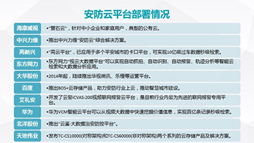 當(dāng)前平安城市和智慧城市的建設(shè)中,智能化分析已經(jīng)得以大量應(yīng)用,大量實例證明智能化分析在城市視頻監(jiān)控中的必要性。但目前安防,智能化不足是安防行業(yè)的主要頑疾之一,更加智能化將是未來發(fā)展方向和創(chuàng)新點。 另一方面,平安城市和智慧城市建設(shè)的重心已經(jīng)從前端的攝像頭等硬件設(shè)備向后端聯(lián)網(wǎng)平臺系統(tǒng)轉(zhuǎn)移。未來云平臺將成為安防企業(yè)競爭的核心。多家企業(yè)已開始布局安放云平臺通過云平臺可以引申出一系列配套的產(chǎn)品、服務(wù)和解決方案,未來平臺建設(shè)能力較強的廠商可通過將平臺免費提供給用戶使用,而由于平臺轉(zhuǎn)換成本高,這將大大增加用戶的使用粘性。