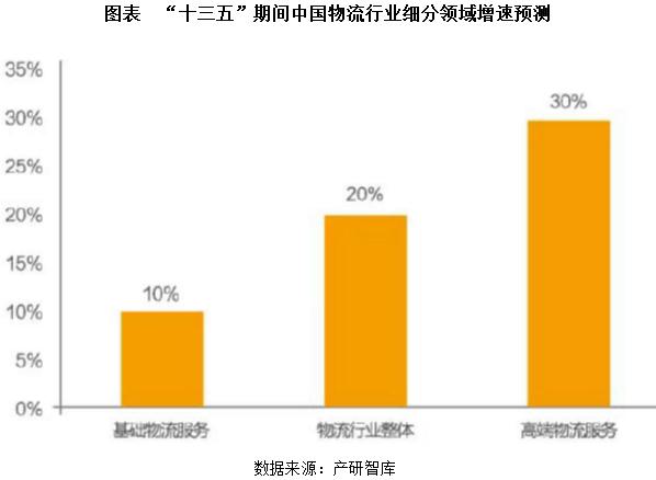 預(yù)計(jì)“十三五”期間中國第三產(chǎn)業(yè)年復(fù)合增長率將達(dá)到16%。其中,基礎(chǔ)物流服務(wù)(倉儲和運(yùn)輸)增速將僅能達(dá)到10%左右的水平。