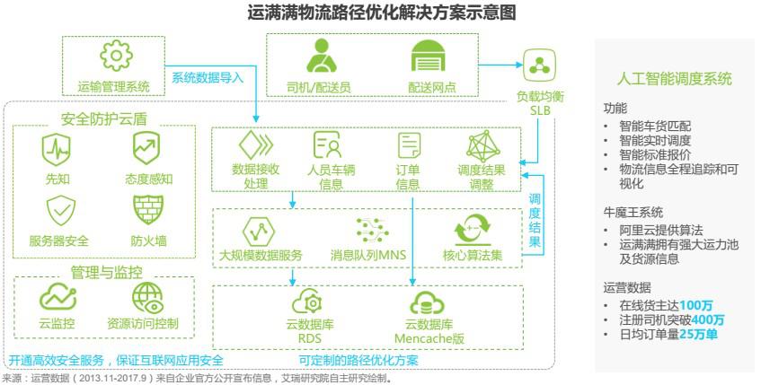 2016年底,運(yùn)滿滿攜手阿里云,發(fā)布了“牛魔王”人工智能調(diào)度系統(tǒng),結(jié)合運(yùn)滿滿的數(shù)據(jù)和用戶場景、以及阿里云的算法團(tuán)隊(duì),共同推動干線配貨人工調(diào)度朝著智能化方向推進(jìn)?!芭D酢毕到y(tǒng)是基于云計(jì)算、大數(shù)據(jù)、移動互聯(lián)網(wǎng)和人工智能技術(shù)的公路物流領(lǐng)域高新技術(shù)綜合應(yīng)用的典型代表,可以實(shí)現(xiàn)服務(wù)車主與貨主的智能車貨匹配、智能實(shí)時(shí)調(diào)度、智能標(biāo)準(zhǔn)報(bào)價(jià)及對物流信息全程追蹤和可視化,顯著提升公路干線物流貨源、車輛、路線、價(jià)格匹配速度、精準(zhǔn)度和運(yùn)輸組織效率。