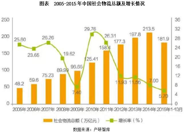 2015年1-10月,全國社會物流總額為181.9萬億元,按可比價(jià)格計(jì)算,同比增長5.7%,增速較1-9月回落0.1個(gè)百分點(diǎn),增速比去年同期回落2.6個(gè)百分點(diǎn)。