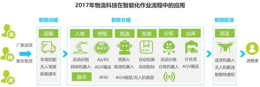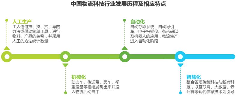 物流業(yè)的發(fā)展經(jīng)歷了人工生產(chǎn)、機(jī)械化、自動化再到智慧化的歷程。人工生產(chǎn)的比例逐漸降低,物流作業(yè)過程中的設(shè)備和設(shè)施逐步自動化,但總體上與美國、德國等西方發(fā)達(dá)國家相比差距較大。工業(yè)4.0的提出,強(qiáng)調(diào)利用物聯(lián)信息系統(tǒng)將生產(chǎn)中的供應(yīng),制造,銷售信息數(shù)據(jù)化、智慧化,最后達(dá)到快速,有效,個(gè)性化的產(chǎn)品供應(yīng)。對于物流科技而言,即整合傳統(tǒng)和新興科技,以互聯(lián)網(wǎng)、大數(shù)據(jù)、云計(jì)算、物聯(lián)網(wǎng)等現(xiàn)代信息技術(shù)提升物流智能化程度,增強(qiáng)供應(yīng)鏈柔性。