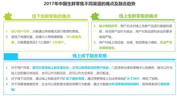 線上線下融合成生鮮電商發(fā)展重要趨勢;圍繞零售核心,優(yōu)勢痛點(diǎn)互補(bǔ);各種渠道的融合是發(fā)展的必然趨勢。