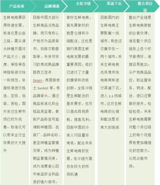 ? 一方面,一大批中小型生鮮電商企業(yè)或倒閉或被并購;另一方面,巨頭入局,不斷加碼冷鏈物流和生鮮供應(yīng)鏈投資,擁有全產(chǎn)業(yè)鏈資源和全渠道資源的企業(yè)將愈發(fā)具有優(yōu)勢。