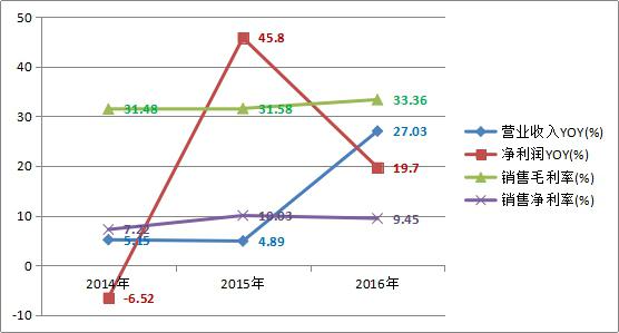 博德維2016年營業(yè)收入為98846037.97元,增長52.60%;毛利潤為39.08%;歸屬于掛牌公司股東的扣除非經(jīng)常性損益后的凈利潤為16699082.32元,增長107.34%;基本每股收益為0.81元/股,增長102.50%。