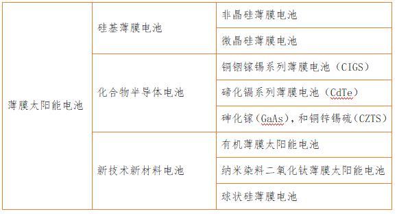 就目前研究領(lǐng)域開發(fā)出的薄膜太陽(yáng)能電池可分成以下幾類: