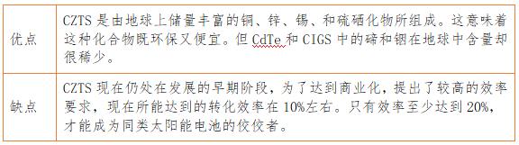 在尋找既環(huán)境友好又原料豐富的太陽(yáng)能電池材料的路上,CZTS被科學(xué)家所發(fā)現(xiàn)。CZTS和CIGS在性能和制備方法上很類似,但其效率更低。