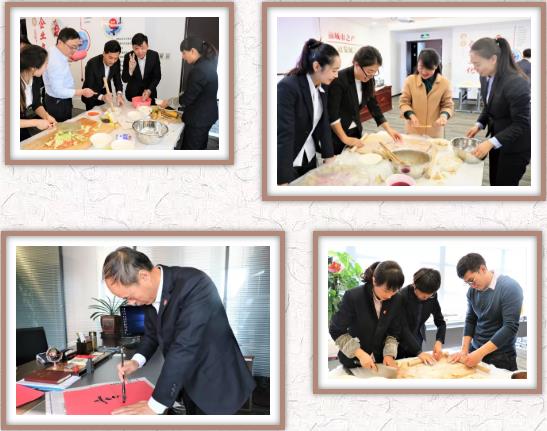 大家分成“愛吃餃子”“會做餃子”“多彩生活”和“幸?;▋骸彼膫€(gè)組合,展開了包餃子比賽。只見他們熟練的搟面皮、放餡料、捏餃子,十指翻飛之間,剁餡聲、歡笑聲、音樂聲,交織在一起,每個(gè)人臉上都洋溢著燦爛的笑容,公司里充滿了歡聲笑語,匯聚成了一片歡樂的海洋。